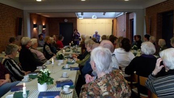 Der er hyggeligt samvær med sang, kaffe og hjemmebagte boller hver tirsdag i løbet af året fra kl. 10-12.