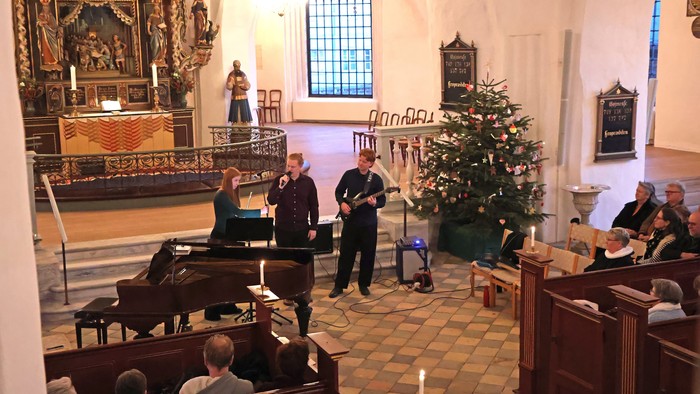 Normalt klappes der ikke ad musikken ved gudstjenester, men det var en helt naturlig undtagelse søndag eftermiddag da sognepræst Lizet Wendt holdt nytårsmusikgudstjeneste i Sankt Nikolai. Klapsalverne rettede sig mod de tre unge, musikalske søskende fra Maribo, som afløste organisten og kirkesangeren og gjorde gudstjenesten ekstra speciel.